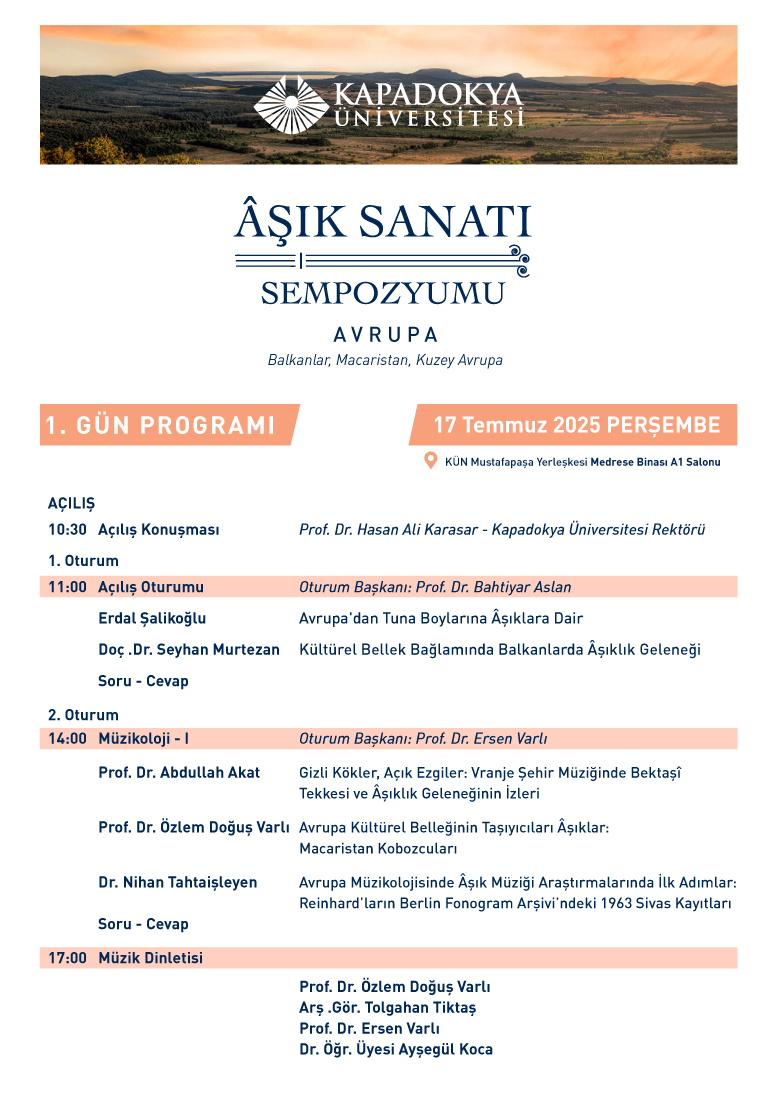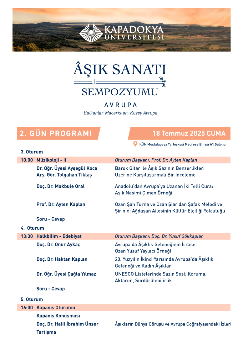 Türk Dili ve Edebiyatı bölümümüz tarafından beşincisini düzenleyeceğimiz sempozyum; bu yıl Balkanlar, Macaristan/ Kuzey Avrupa özelinde âşık sanatını uluslararası bağlamlarda ele almayı amaçlamaktadır. Dünyanın birçok yerinde icracılar müzik aletlerini seslerinin aracısı kılarak halkın önde gelen isimleri olmuşlardır. Bu bağlamda bazı kültürler kendi içinde ozanlar yetiştirmiş ve bu ozanları temsilcileri kılmışlardır. Bu tür kültür aktörleri hem kültür aktarımına katkı sağlamış hem de uluslararası arenada toplumlarının görünen yüzü olmuşlardır. Ozanların dilinin evrenselliği, ezgilerin yerelliğini dünyaya taşımaktadır. Âşık sanatının bu yanını ele almak, yakın coğrafyaların benzerliklerine dikkat çekmek için 17-18 Temmuz 2025 tarihlerinde “Avrupa” temasıyla çağrılı katılımcılarla sempozyum düzenlenecektir.